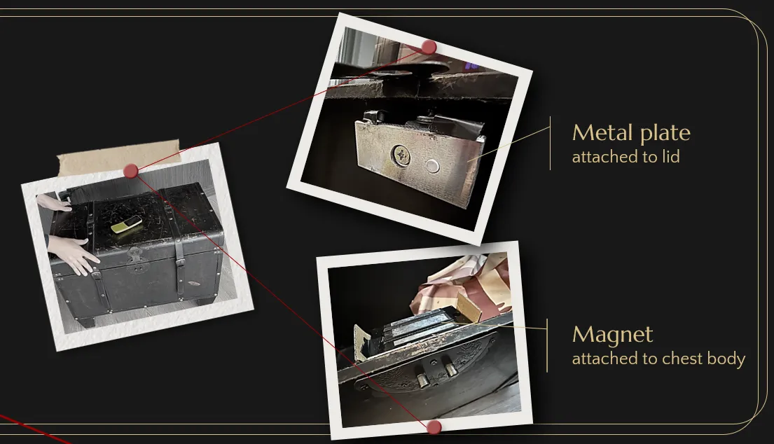 The lock works by holding down the lid of the treasure chest using a magnet.
