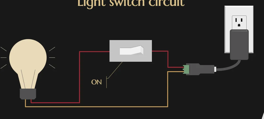 To illustrate how our circuit works, let’s look at a light bulb. In this diagram, we have a light bulb, an on-off switch, and a power supply. The circuit is basically one big circle that can be severed when the switch is off, but when the switch on, the current flows and the light is now shining bright like a diamond!