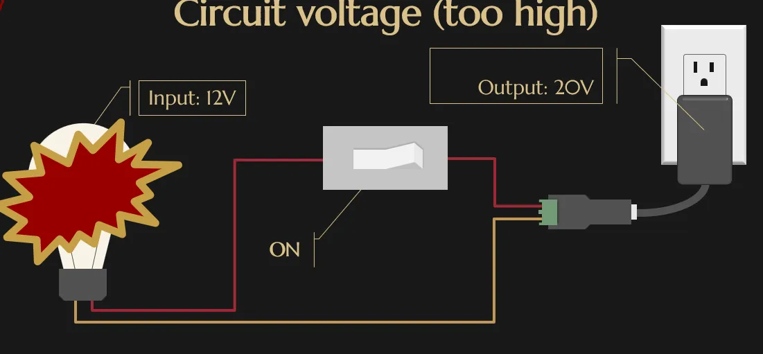 If the voltage from the power supply is lower than what the light bulb needs, then the bulb will be dim, If the voltage is higher than what the light bulb uses, then the light bulb will burn out.