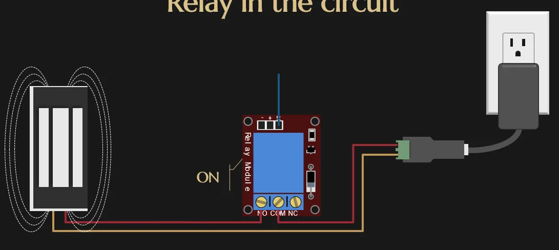 Let’s talk about the light switch. In a house, a switch is something that can flip off and on with your index finger (or your middle finger if you’re having a bad day). The equivalent to that in our circuit is something programmable called a “relay”.