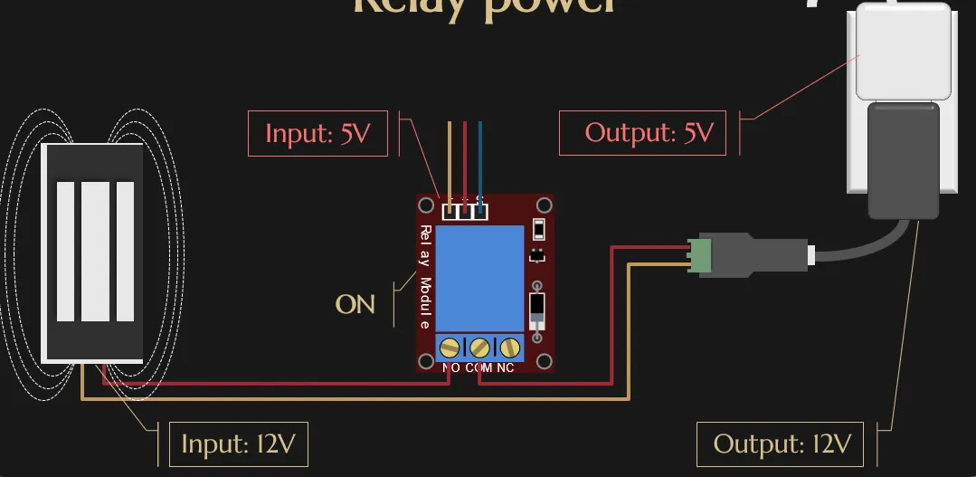You can programmatically toggle it on using a “signal wire” (that’s blue in our diagram), which is inserted into a port usually labelled “S” or “IN”.