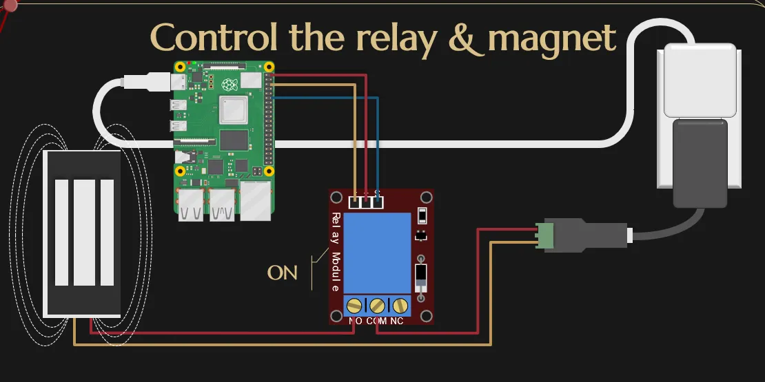 So, using the on off library on npm, we get an interface to read and write to the pin, which eventually controls the magnet.